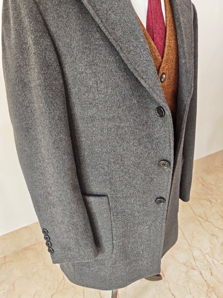 Dale un toque fresco a tu look de nueva temporada con este abrigo gris de tweed y sarga . Para conservar las líneas elegantes que buscas para los días de capas, lo hemos cortado con un corte entallado y un cierre cruzado que da la impresión de estar abrochado o abierto.