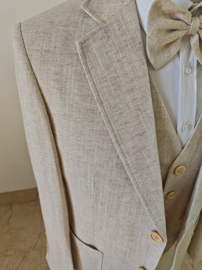 La colección exclusiva de edición limitada, creada por nuestro experto estilista, aporta un toque vintage y moderno al look de caballero, añadiendo un toque sofisticado con la combinación perfecta del chaleco de sarga negro. Un tweed irresistible y llamativo, ideal para bodas, ocasiones especiales, negocios o incluso para un look casual elegante para el caballero moderno. Es una opción duradera y resistente para un traje elegante.